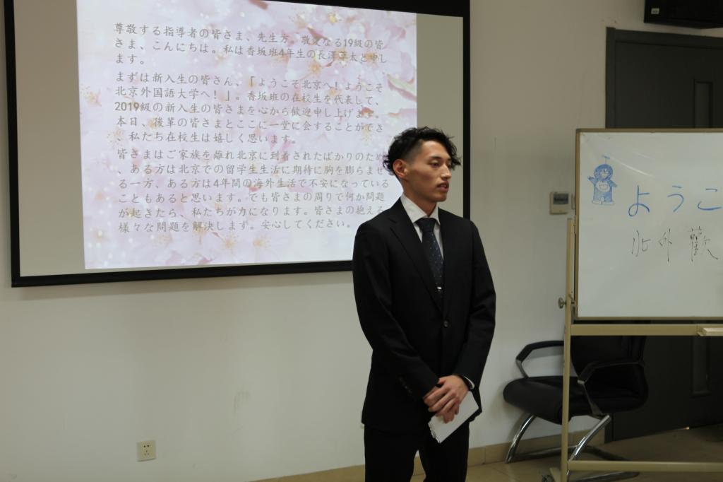 李冰主任代表学校,向新同学表达了热烈的欢迎。他介绍了北外的历史发展和办学特色,并表示学校会尽最大努力为同学们创造良好的生活环境和学习环境。