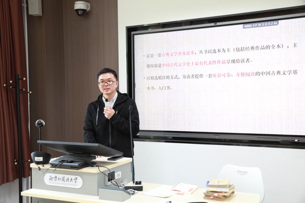徐晓峰对此次交流会进行总结,表示在座的学生、老师,当年接触文学很可能就是通过这样的“文学读本”,但基于感性的认识较多,李俊编审的分享,从学术、出版的角度深入浅出地带领大家认识了当代选本的演进脉络,能给大家更为理性的了解。“读本丛书”选取的是经典,丛书本身也在一代代如李俊编审一样的学者型编辑手中逐渐成为经典。最后,徐晓峰特别感谢了李俊编审和人民文学出版社对北外中文系本科生实习工作的支持。