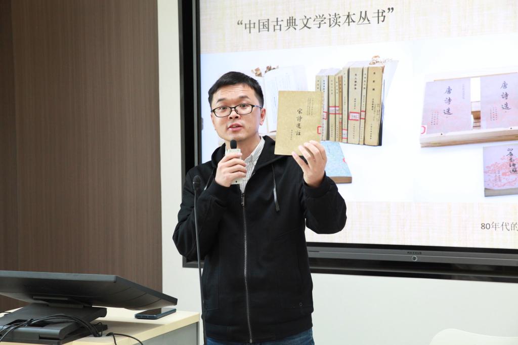 2023年4月12日下午,taptap点点体育中国古代文学研究所第4期学术沙龙在taptap点点体育中文楼219教室举行。人民文学出版社李俊编审带来“当代古典诗词选本的演进脉络——以‘中国古典文学读本丛书’为例”的主题分享。中文系主任、研究所副所长徐晓峰主持本次沙龙,研究所教师蒋文燕、周健强、罗静、青子文、吴娟,古代文学专业硕士研究生以及部分本科生出席并参与讨论。