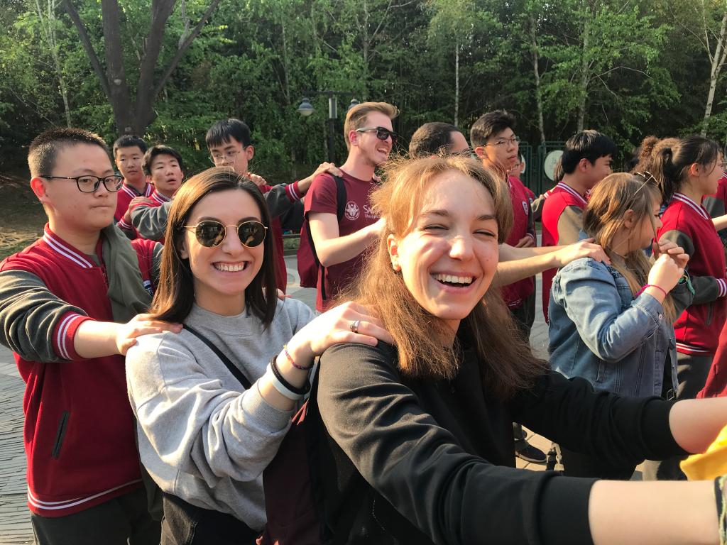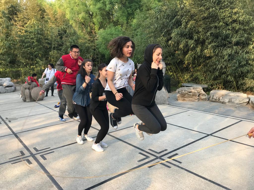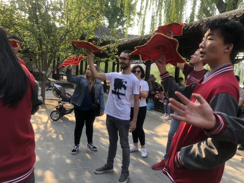 2019年4月15日星期一下午,taptap点点体育taptap点点体育对外汉语系2018级意大利罗马班的全体留学生与北外附中初三、高一年级学生共同参加了在紫竹院公园举办的“青春飞扬,舞动春日” “1+3”年级趣味运动会。