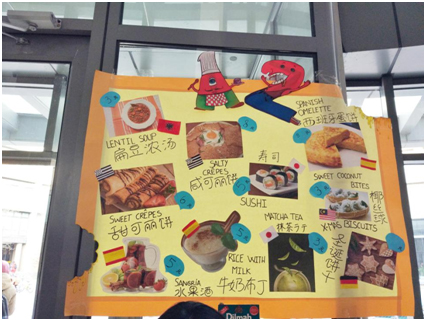 “酷卖汇”当天,来自各个国家的特色美食吸引了来自校内外的师生,更有很多家长带着孩子来品尝。泰国的冬阴功汤、意大利的提拉米苏、西班牙的桑格利亚……丰富多样的各国美食让大家流连忘返。为了推广自己国家的美食,同学们想出了各种各样吸引眼球的点子,穿统一服装、跳集体舞等等。在场师生也受到现场气氛的感染,积极与留学生进行互动交流,盛况超前。