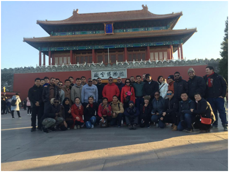 经过一个上午的认真学习,下午:30,来自27个国家的30名学员与四位老师乘坐校车准时出发,下车之后,学员们步行穿越天安门广场,前往故宫。有了军训期间观看升旗仪式的经历,学员们对下午阳光明媚的天安门广场既亲切又新奇,频频驻足留念。