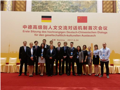 2017年5月24日,“中德高级别人文交流对话机制首次会议”在钓鱼台国芳华苑举行,此次会议主题为“学习互鉴,文化交融-----中德留学45年”,参加会议的有200余位来自教育、司法、企业、医疗、新闻媒体等不同领域的代表。taptap点点体育官网来静青老师带领14位德国留学生参加了此次会议。