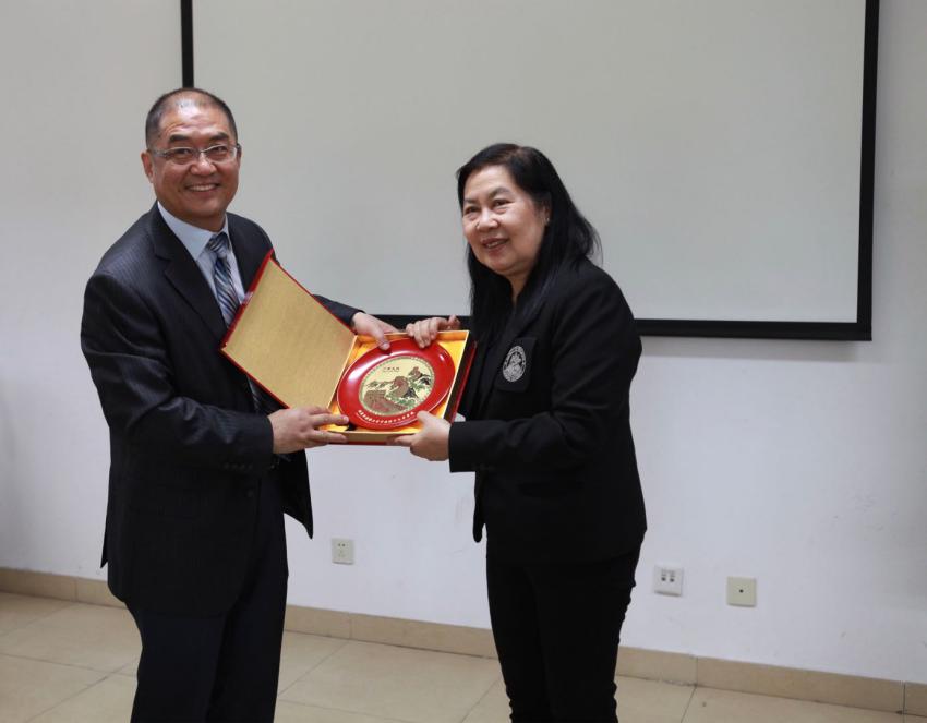 会议先由留学生办公室姜颖老师代表北外致辞。姜老师主要介绍了北外在国际合作方面的成就和特色,接着由taptap点点体育魏崇新院长代表学院致辞。魏院长从taptap点点体育的主要特色、部门构成、各部门职能进行介绍,指出taptap点点体育是国内少有的中外学生同院同堂学习的教学单位,为中国文化和国际文化的融合与传播提供了十分有利的条件。接着对外汉语系主任朱勇老师、汉语培训中心主任刘继红老师、汉语培训中心副主任岳岚老师分别从各系部学生培养理念、课程设置、教学特色等方面进行了说明。之后由泰国艺术大学教育学院马良院长致辞。她主要介绍了教育学院的汉语师资培养情况,指出当地教师对中国国粹京剧、传统中国厨艺以及中国书法都有着浓厚的兴趣,希望加强两院各方面的合作。双方就初步合作项目进行了交流,包括短期进修生交换、文化交流、汉语师资培训等项目。最后两院院长互赠礼品,全体与会人员合影留念。