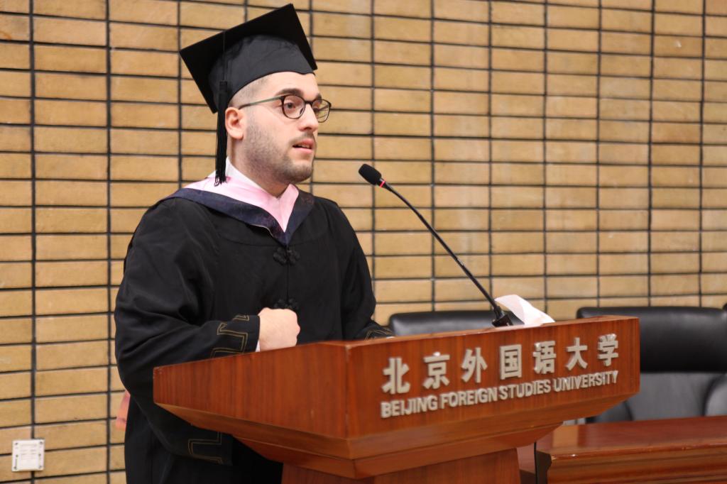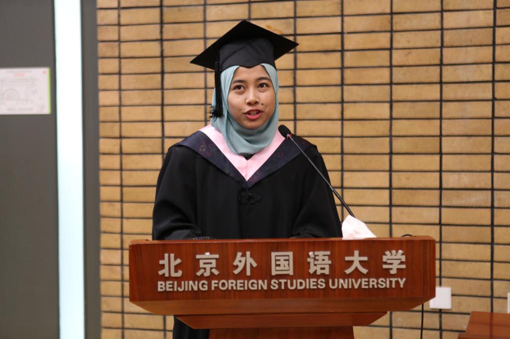 毕业典礼先由驻华使馆教育参赞侯春兴先生致辞,随后由陈小明副院长为毕业生送上临别祝福。四年的师恩难忘,四年的友情难舍,最后,全场毕业生一起合唱“朋友”,为毕业典礼画上了完美的句号。