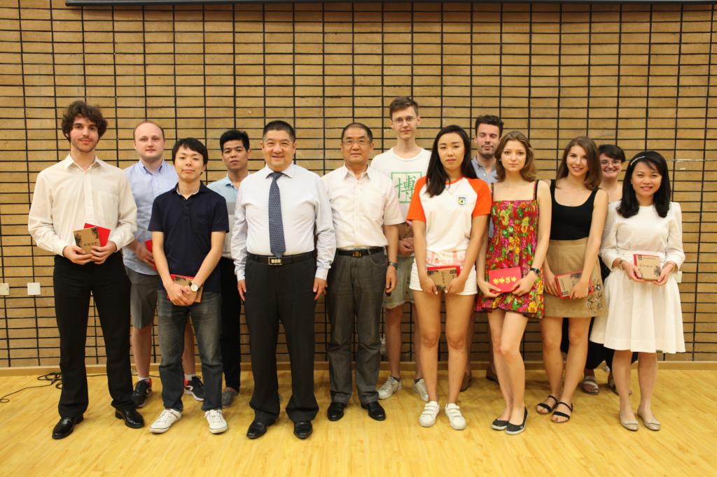 典礼举行了颁奖仪式,分别表彰“优秀学生”、“好班长”和“全勤生”。汉语培训中心进修部魏瑞明同学和他的三位队友参加了“2018年北京外国留学生汉语辩论邀请赛” ,最终taptap点点体育代表队突破重围获得总冠军。借此结业典礼的机会,taptap点点体育刘厚广书记为最佳辩手魏明瑞同学颁奖,陈小明副院长为参加“2018在京外国留学生‘我与北京’主题征文比赛”并获得二等奖、三等奖以及优秀奖的学生颁奖。