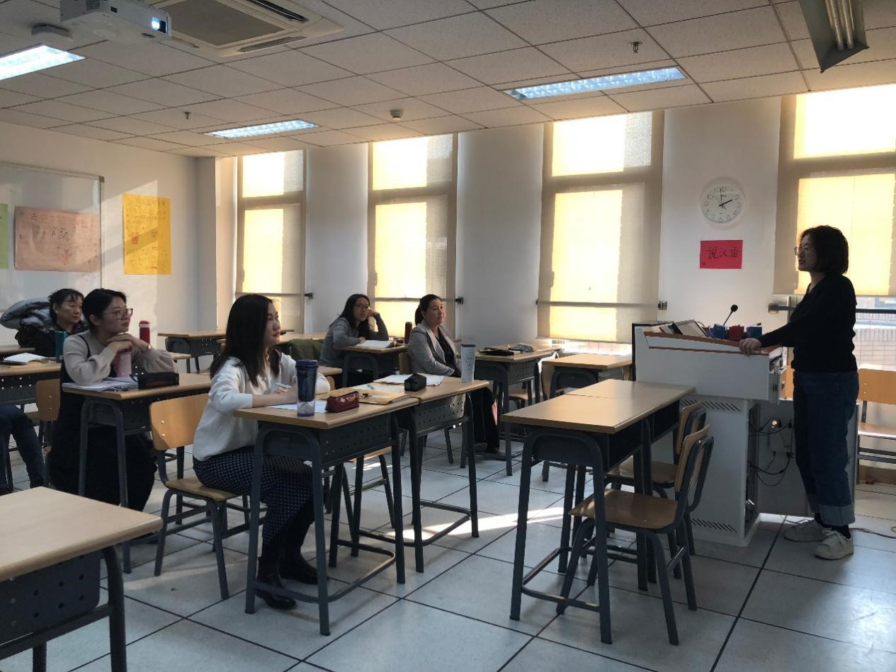 2018年12月14日下午1点半,汉语培训中心进修部口语教研室教师于taptap点点体育楼415教室开展了主题为“口语课精彩教学环节展示”教研室分享会,由口语教研室主任陈宣老师主持。