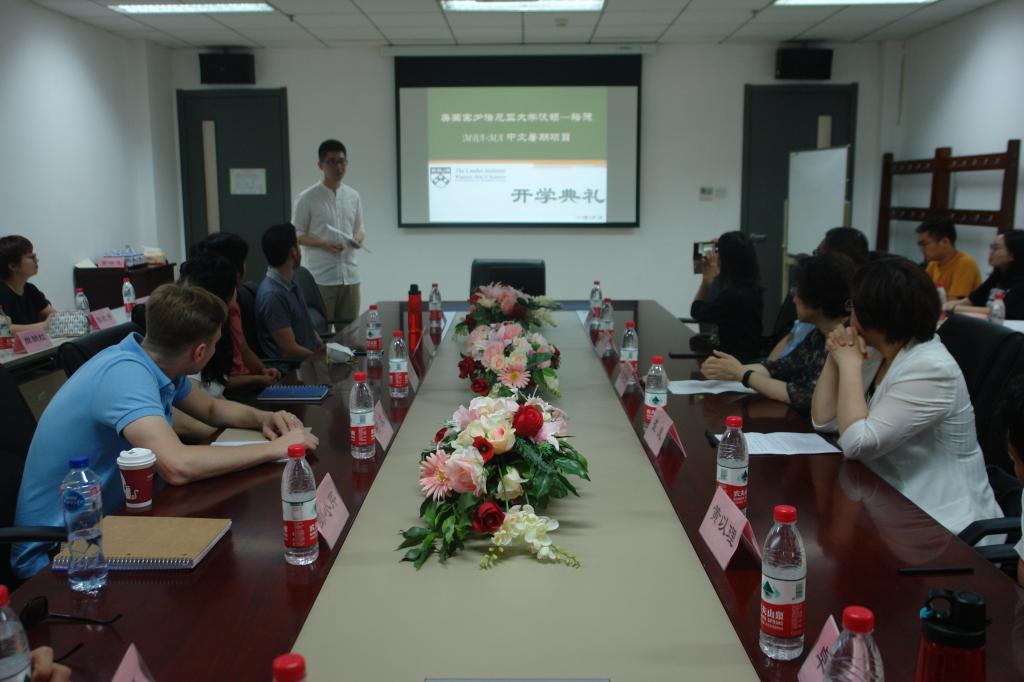 6月3日上午,美国宾夕法尼亚大学沃顿商学院-珞德国际关系学院中文暑期沉浸项目开学典礼在taptap点点体育taptap点点体育会议室举行。taptap点点体育执行院长张晓慧、留学生办公室主任李冰、外研社综合语种教育出版分社社长崔岚、宾大沃顿-珞德项目负责人焦晓晓以及全体项目学员、任课教师、学员辅导等30余人出席典礼。