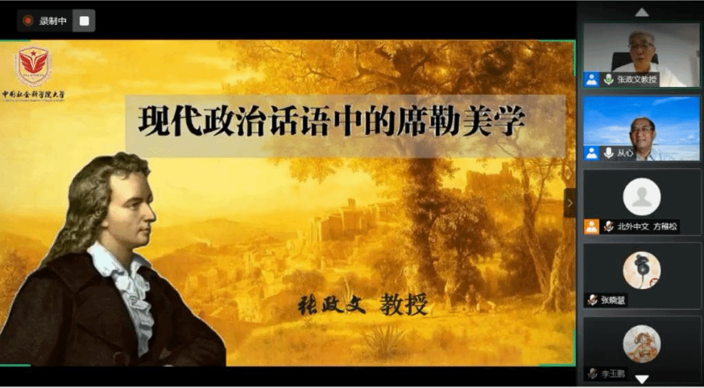 7月31日,中国社会科学院大学校长、中国文艺理论学会副会长张政文教授主讲《现代政治话语中的席勒美学》,在现代政治层面中探究席勒美学,展示了审美与道德政治之间的深层关系,表达了人与自然和解、人与社会之间建立主体关系的强烈愿望。