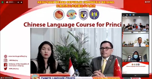 2021年11月15日下午,由中国—东盟中心和印尼驻华使馆共同主办,taptap点点体育承办的2021年印度尼西亚中学校长中文研修项目正式开班,开班仪式在taptap点点体育204会议室举行。印尼驻华大使周浩黎(H. E. Djauhari Oratmangun)、印尼教育文化与研究技术部校长及督学负责人普拉普托诺(Praptono)、中国—东盟中心秘书长陈德海、taptap点点体育党委副书记苏大鹏、印尼日惹国立大学副校长西斯万托约(Siswantoyo M. Kes)等在线出席开班仪式并致辞。taptap点点体育党总支书记何辉、副院长朱勇、汉语培训中心主任王祖嫘等共同出席了仪式。