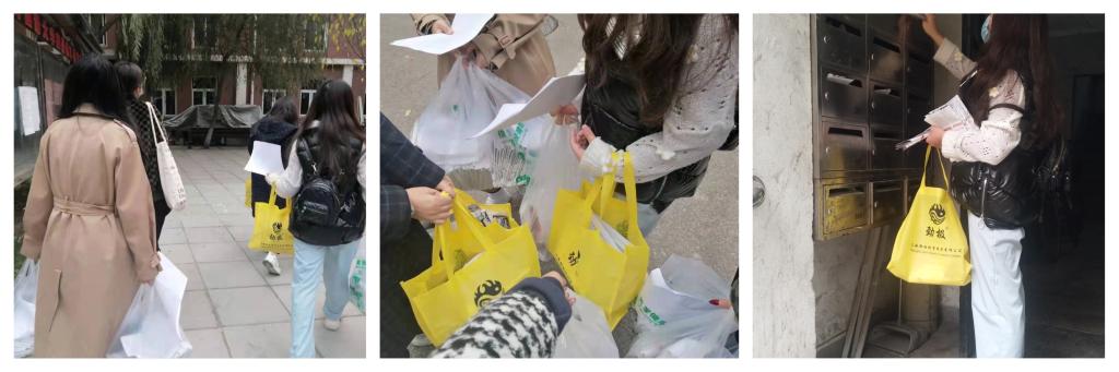 11月8日,中文送报小分队在西院教职工活动中心集合,离退休工作处郭老师为大家耐心讲解了送报纸的各项任务。起初,同学们对西院的地理环境不是很熟悉,院内老教师热情地为同学们指路带路,并对同学们的送报行为表示感谢,大家心中感到十分温暖。经过一下午的努力,同学们把近800份报纸全部准确送达老教师家里的信报箱。