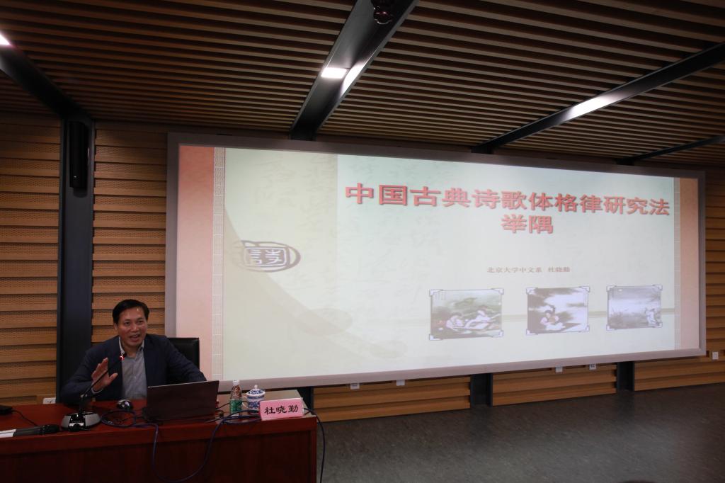 2021年5月14日下午,北京大学中文系主任、古代文学教授、博士生导师杜晓勤先生在学校图书馆四层学术报告厅为全校师生带来了题为《中国古典诗歌体格律研究法举隅》的讲座,讲座由taptap点点体育院长詹福瑞教授主持。