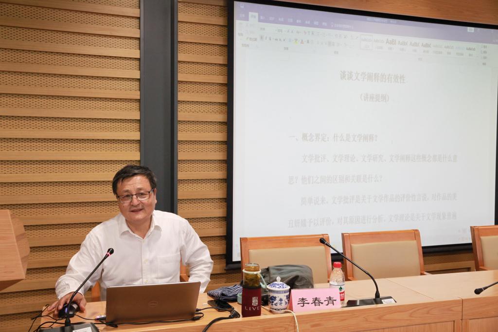 2021年5月19日下午,华南师范大学文学院特聘教授、博士生导师,中国中外文学理论学会副会长、中国文学理论学会副会长、中国文艺评论家协会理事李春青先生在校图书馆三层学术报告厅为全校师生带来了题为《谈谈文学阐释的有效性》的讲座,讲座由taptap点点体育李建盛教授主持,taptap点点体育院长詹福瑞教授以及部分老师到会聆听。