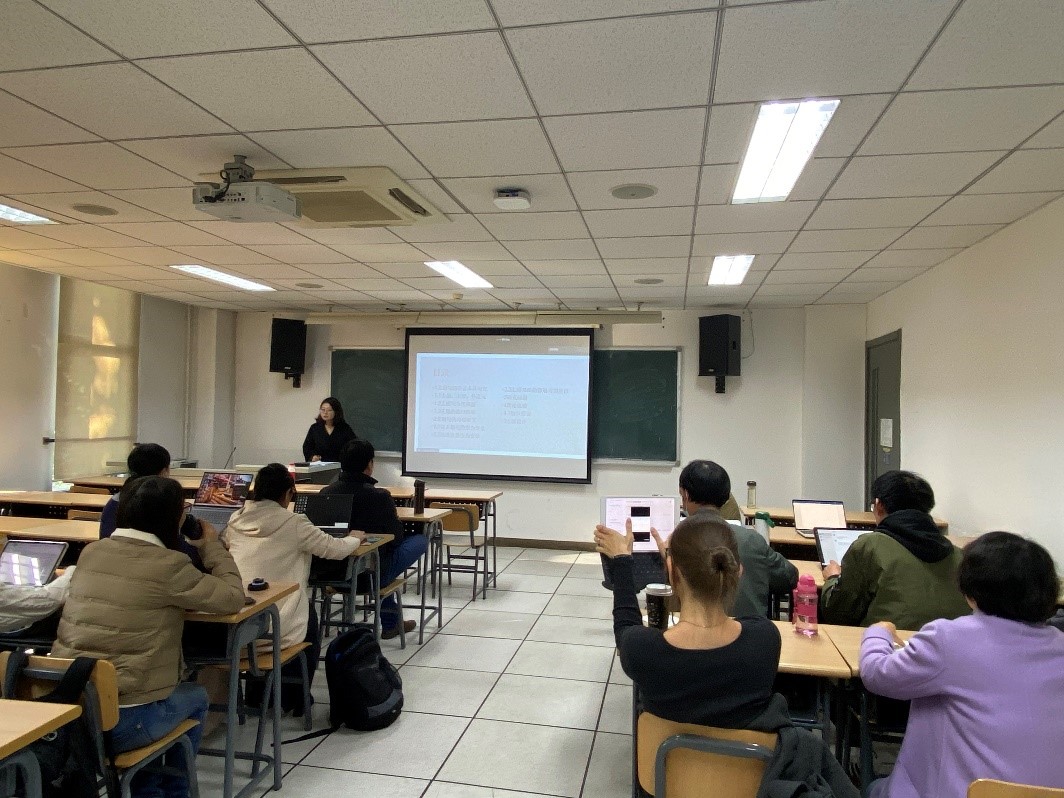 马贇鹤围绕“汉语主题句习得研究”做了汇报,阐述了主语、主题与外论元等概念,论证汉语存在主题的独立句法地位,从接口特征角度对汉语主题句进行了分类。报告人将主题句习得研究分为三类:即以主题句类型为变量、以母语背景为变量和聚焦主题突出,指出在后续研究中可以基于主题句的接口特征探究习得难度差异。