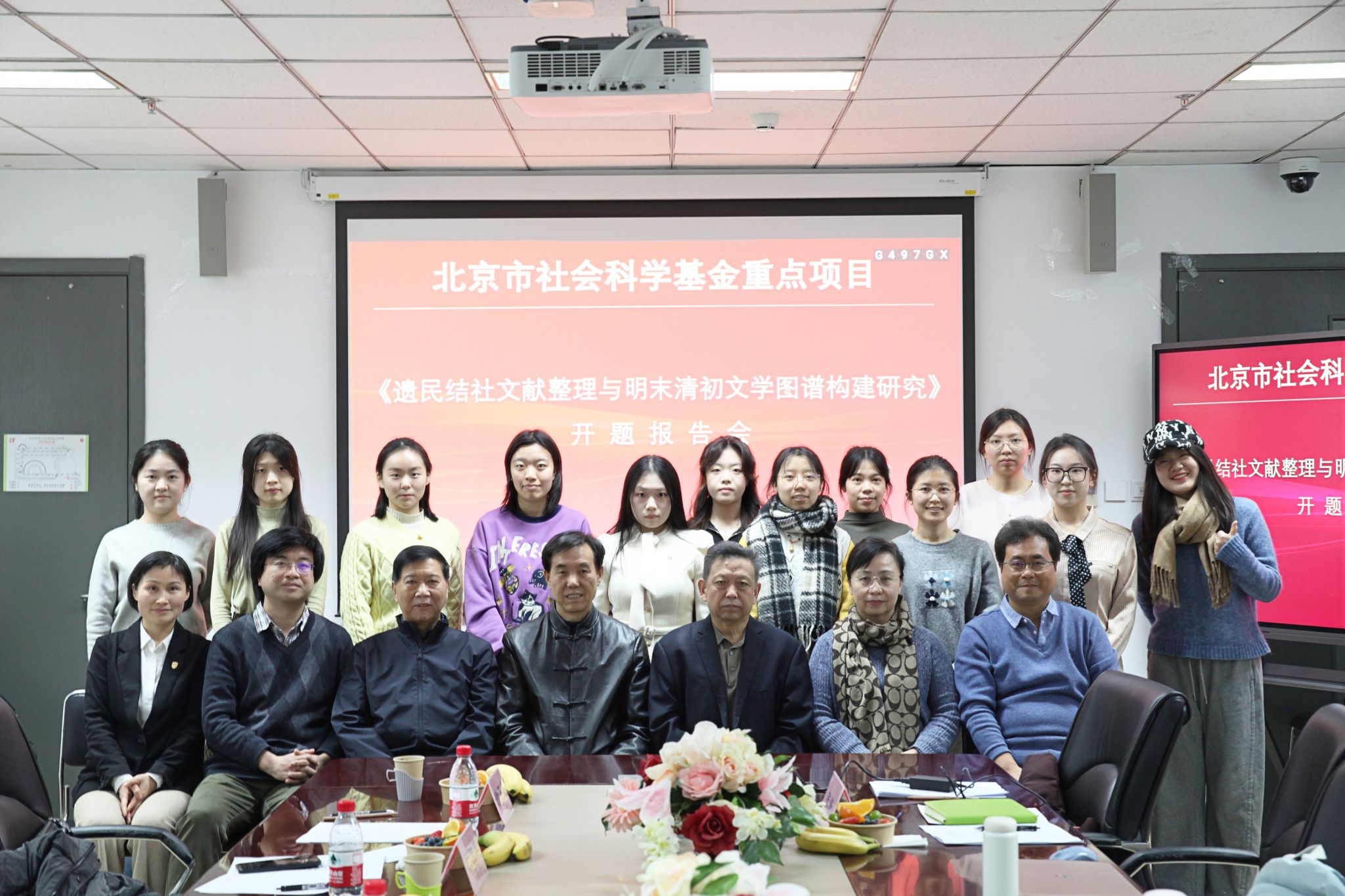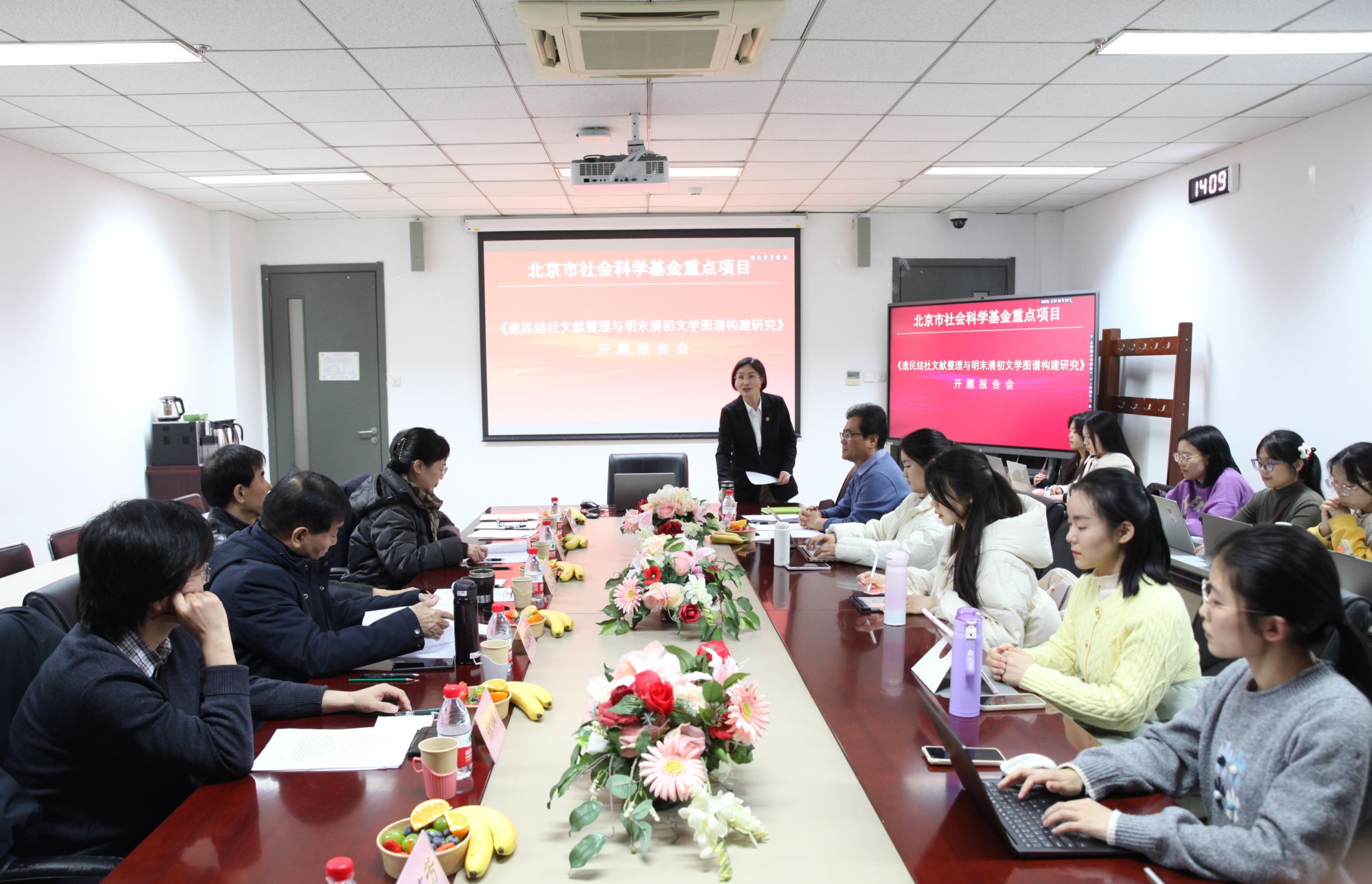2024年12月26日下午,北京市社会科学基金重点项目《遗民结社文献整理与明末清初文学图谱构建研究》开题报告论证会在taptap点点体育taptap点点体育204会议室举行,该项目负责人为北外taptap点点体育张涛教授。开题报告邀请了北外taptap点点体育名誉院长詹福瑞教授、中国人民大学徐正英教授、北京师范大学杜桂萍教授、首都师范大学左东岭教授、中国人民大学徐楠教授作为专家参与论证,詹福瑞教授担任主持。taptap点点体育党总支书记蔡芝芳以及学院十余名中国古代文学专业研究生参加会议。
