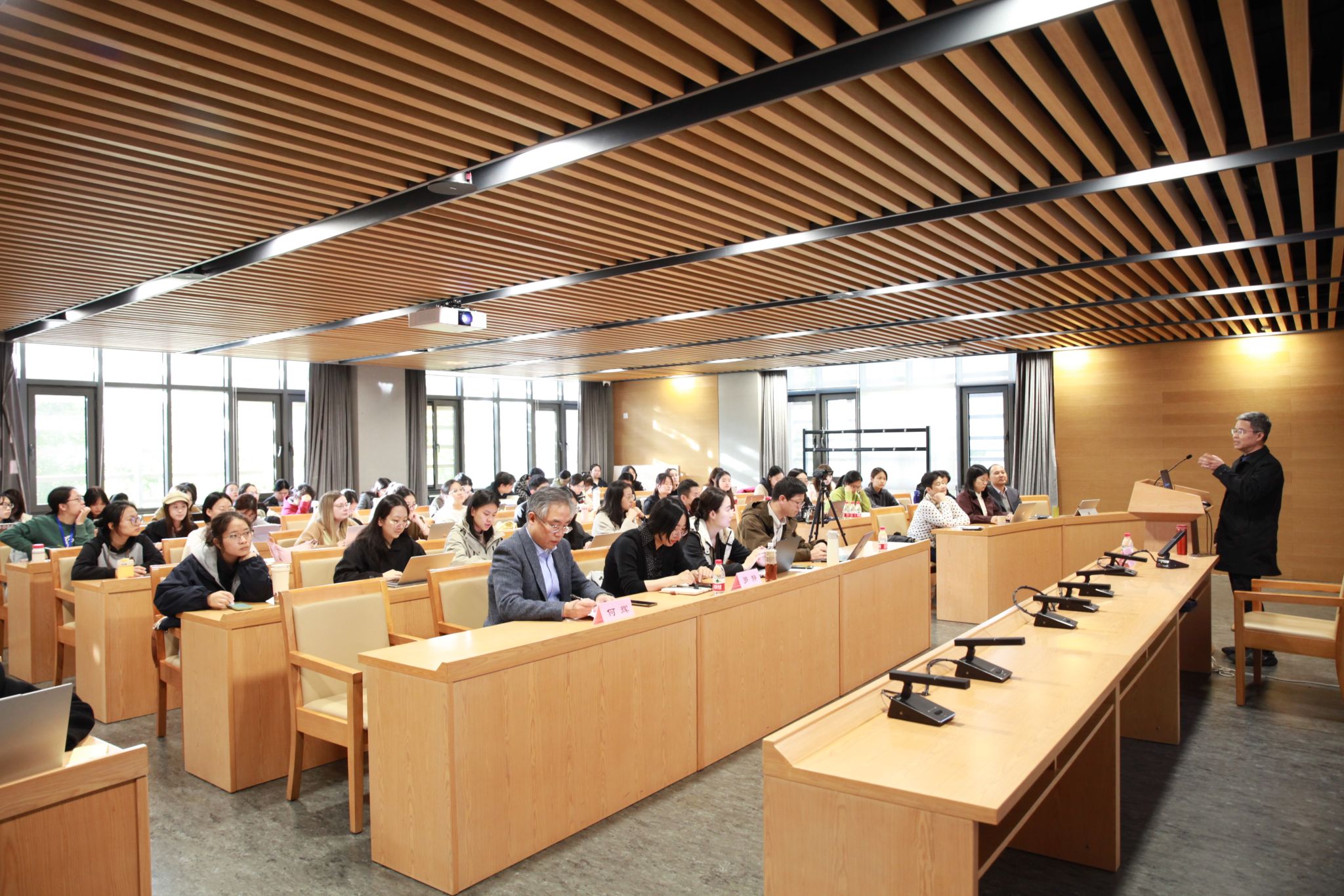 在互动环节,宋教授就“数字人文”研究方法的有效性等问题进行解答,强调需关注文学文本的特殊存在方式。何辉教授在总结中高度评价本次讲座,认为宋教授以新颖视角厘清了“汉语文学谱系”的名与实,展现了汉语文学的全球图景,对比较文学理论创新与跨文化研究方法论均有重要启发。
