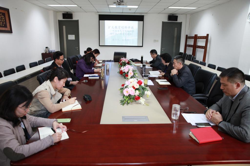 张晓慧院长回顾改革开放以来我国教育对外开放的丰硕成果时指出,在机制建设、人文交流、双向留学等多个方面不断创新,成就显著。结合自身经历,张晓慧院长就如何扩大教育对外开放提出几点问题和建议,例如如何创立中文学科学生外出交流机制?如何加强国内高校校际之间交流、提升人才培养效果?与会同志就此展开了热烈讨论,提出了要继续加强优势资源互补、提升高校协同创新、打破体制机制壁垒等方面的建议。