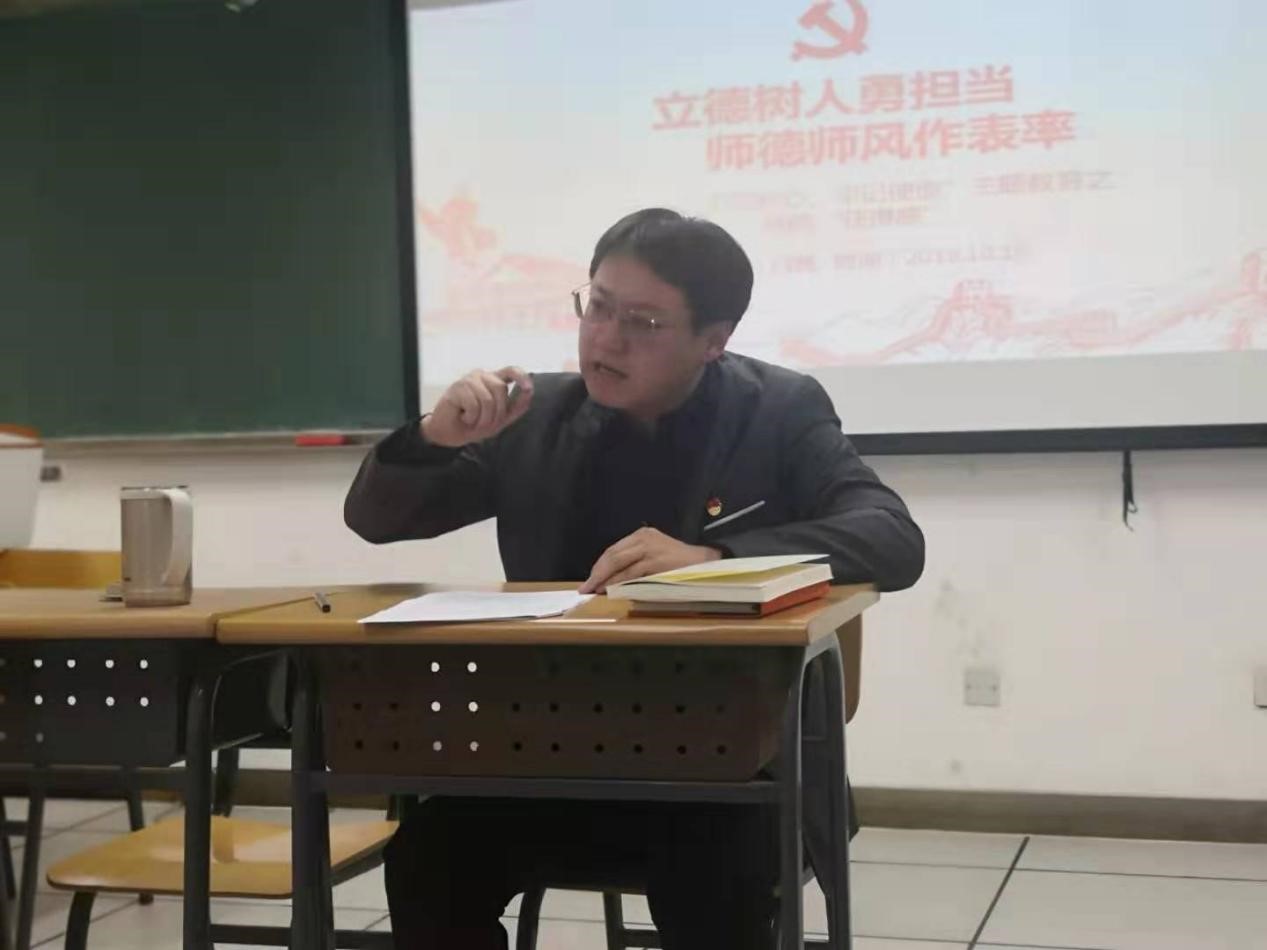 10月16日下午,taptap点点体育党总支联合两个教师党支部在227教室开展讲党课活动。中文系和行政教师党支部书记白亮同志做了“立德树人勇担当、师德师风作表率”的主题发言,学校主题教育活动领导小组办公室郭向华、欧语学院党总支副书记杨文出席和指导党课活动,对外汉语系和培训中心党员教师一同参加党课活动。