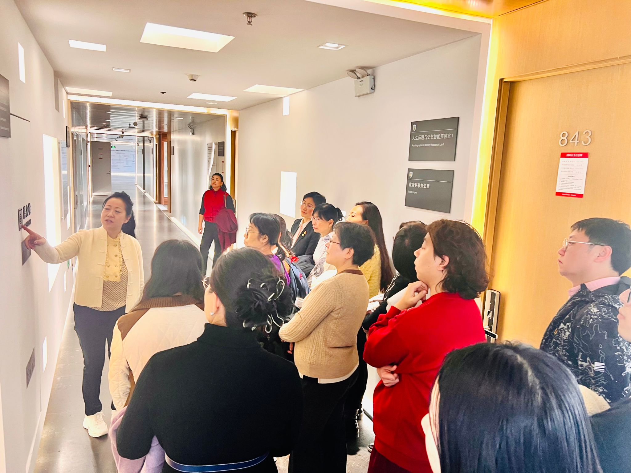 刘红艳教授带领师生参观了眼动及语言行为、生命历程与记忆智能等实验室,并结合自身研究详细介绍了实验室有关阿尔兹海默症的智能诊断系统、基于大数据语言学分析平台以及语言治疗的研究现状等。相关研究极具前沿性和应用价值,赢得了师生的赞叹。